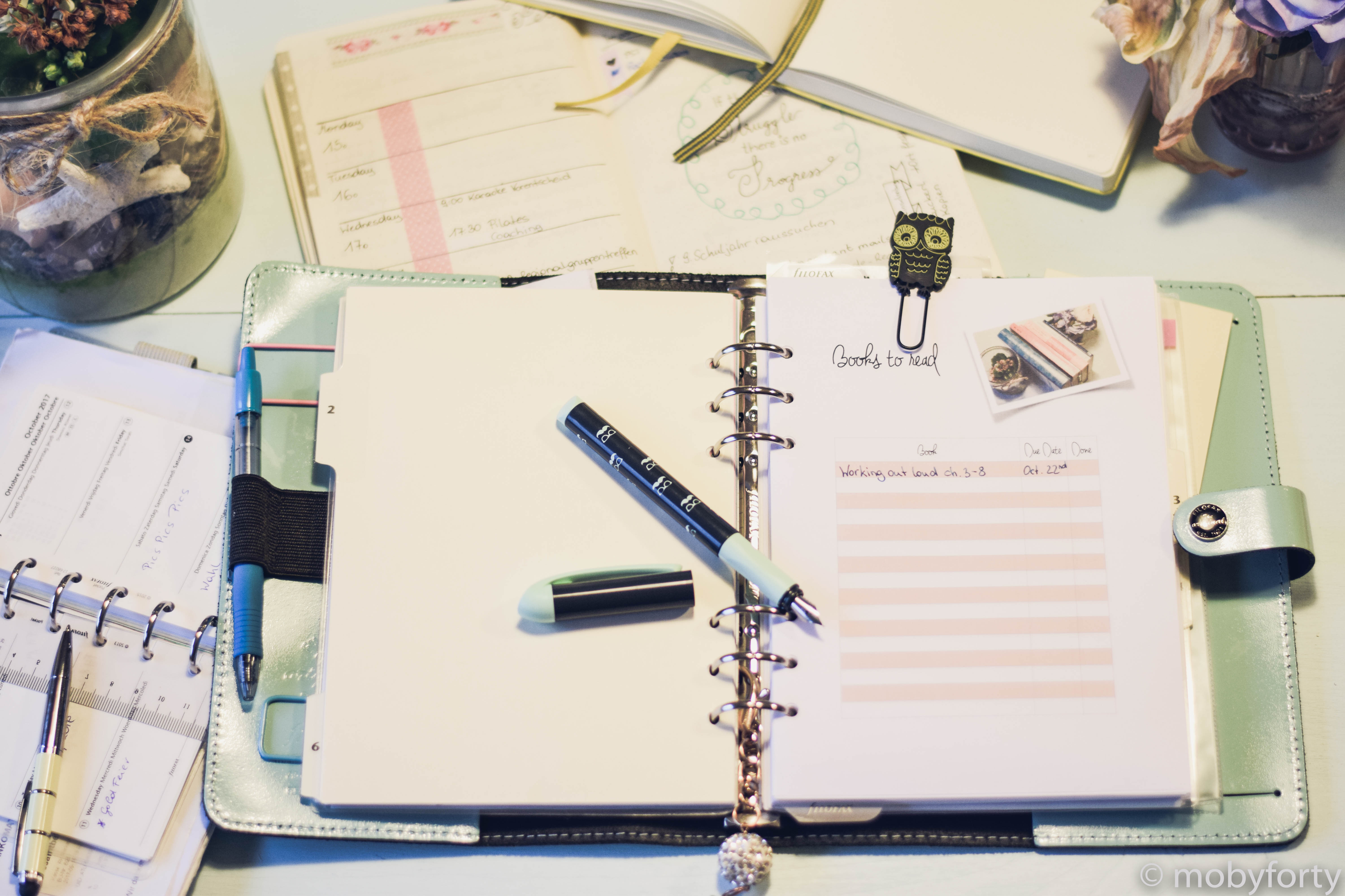 So I remembered my year at the „Leadership Academy“ when I started bullet journaling. Bujos helped me to organize my daily tasks, it made me more productive in my job as a principal of a small middle school in Austria. I simply didn’t loose myself in tasks anymore but was focused a lot more when working. But using a bujo didn’t help me a lot when it came to organize my appointments and meetings. So I did a little bit of research and ended buying my first Filofax (personal), which soon was too small in size for my taste.